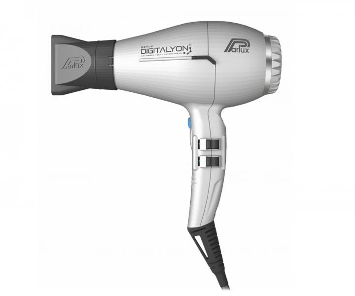 Profesionálny fén na vlasy Parlux Digitalyon disponuje novým digitálnym motorom E-Lyon. Vďaka tomuto modernému bezuhlíkovému motoru s dlhou životnosťou fén dosahuje vyšší výkon 2400 W s prietokom vzduchu až 88 m3/ h. Inovované vytvarovanie tepelného telesa potom umožňuje rýchlejšie a bezpečné vysúšanie vlasov. Nový vylepšený filter, s patentovaným systémom HFS na zachytávanie vlasov, zachytáva ešte viac nečistôt, čím predlžuje životnosť fénu a vďaka zaujímavému designu tiež dodáva fénu viac elegencie. Tieto nové technológie umožnili zníženie hmotnosti fénu a dodanie väčšej rovnováhy, čo z fénu robí ideálneho pomocníka pre každodennú prácu bez únavy a bolesti paže aj v náročných prevádzkach. Pomocou tlačidiel na rukoväti fénu je možné nastaviť jednu z 2 možností rýchlosti vzduchu a 3 možností teploty vzduchu. Nechýba tu ani samostatné tlačidlo studeného vzduchu. Fén disponuje funkciou ionizácie, ktorá zaisťuje hydratáciu, lesk, hodvábnu mäkkosť vlasov a elimináciu statickej elektriny. Súčasťou balenia sú dve vzduchové trysky so šírkou 91 mm a 62 mm.
