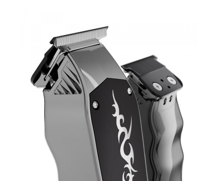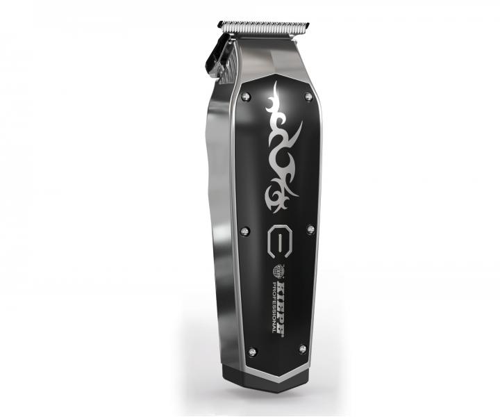 Profesionálny a designový kontúrovací strojček Kiepe Tattoo Trimmer je ideálny na dokončovacie a detailné práce pri strihu vlasov i fúzov. Strojček disponuje tichým DC motorom s výkonom 7200 otáčok za minútu a celokovovou T-blade hlavicou o šírke 41 mm a s výškou strihu 0,3 mm, ktorá zaisťuje presný a detailný strih. Strojček má sploštený tvar tela, vďaka čomu skvele padne do ruky a dobre sa s ním manipuluje. O stave batérie informuje LED kontrolka na tele strojčeka. Doba prevádzky strojčeka je 150 minút, doba nabíjania potom 120 minút. V prípade vybitia strojčeka v priebehu strihania ho môžete ďalej používať po pripojení do siete. Súčasťou balenia je krytka hlavice, skrutkovač, čistiaca kefka, olej a nabíjací adaptér.