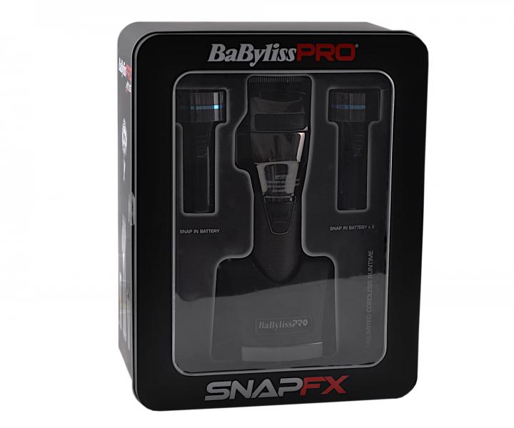 Profesionálny strojček BaByliss Pro SnapFX FX895E v robustnom celokovovom prevedení zaistí precízny strih vlasov aj fúzov. Strojček je vybavený novým digitálnym motorom s výkonom až 6800 otáčok za minútu. Celokovová hlavica strojčeka so šírkou 45 mm s DCL povrchom, ktorý hlavicu chráni pred poškriabaním a zvyšuje odolnosť hlavice, ponúka možnosť nastavenia výšky strihu od 0,8 do 3,5 mm pomocou aretačnej páčky na boku strojčeka. Výšku strihu je možné ďalej meniť pomocou plastových nadstavcov s kovovou sponou o veľkosti 1,5 mm, 3 mm, 4,8 mm, 6 mm, 10 mm, 13 mm, 16 mm a 19 mm. Pod hlavicou strojčeka sa nachádza magnetický kryt, ktorý umožňuje ľahký prístup k pohyblivým častiam hlavice pri čistení strojčeka. Celokovové telo strojčeka má okrúhlu protišmykovú rukoväť, ktorá umožňuje ľahkú manipuláciu so strojčekom v akomkoľvek uhle strihania. Bezdrôtovú prevádzku strojčeka zaisťuje vyberateľná batéria s dobou prevádzky až 120 minút. Súčasťou balenia sú dve tieto dobíjacie batérie, doba prevádzky je tak celkom až 240 minút. Obe batérie je možné súčasne nabíjať v nabíjacej stanici s odkladacím stojanom pre strojček. Doba nabíjania batérií je 180 minút. Súčasťou balenia je čistiaca kefka, olej, krytka hlavice a skrutkovač.