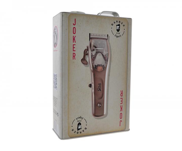 Profesionálny strojček na vlasy Fox Joker v mosadznej farbe vás osloví svojim unikátnym designom s priehľadnou časťou tela. Strojček disponuje 45 mm strihacou hlavicou z nerezovej ocele pokrytej povlakom Diamond Blade, vďaka ktorému je ostrie hlavice trvanlivejšie a odolnejšie voči zahrievaniu a výkonným motorom s 10 000 ot./min. Výšku strihu je možné za pomoci aretačnej páčky nastaviť od 0,3 mm do 3 mm. Súčasťou balenia je päť magnetických nadstavcov o veľkosti 1,5 mm, 3 mm, 6 mm, 10 mm a 13 mm. Na jedno plné 70 minútové nabíjanie je doba prevádzky strojčeka až 120 minút.