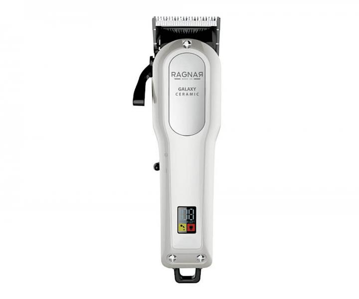 Profesionálny strihací strojček Ragnar Galaxy Ceramic je skvelým nástrojom na strihanie vlasov i fúzov. Ponúka vám vysoký výkon, dlhú životnosť a veľmi tichý chod motora s minimom vibrácií. Jeho jedinečná strihacia hlavica je široká 46 mm, má pevnú titánovú čepeľ a keramickú pohyblivú čepeľ. Výšku strihu je možné upravovať ako pomocou aretačnej páčky na boku strojčeka, tak pomocou vymeniteľných nástavcov s výškou 1,5 mm, 3 mm, 4,5 mm, 6 mm, 10 mm a 13 mm, ktoré sú obsahom balenia. Strojček má akumulátorovú prevádzku a pri plnom nabití po 3 hodinách nabíjania je doba jeho prevádzky 4 hodiny. Praktický LCD displej zobrazuje úroveň nabitia batérie a má tiež kontrolku nutnosti nabíjania aj mazania. Údržbu strojčeka Vám uľahčí priložená kefka a mazací olej.