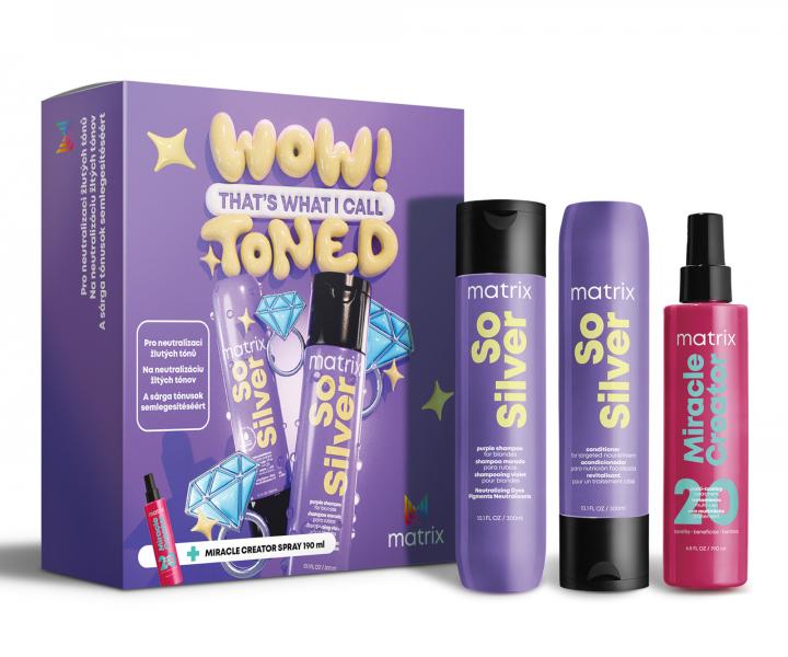 Rad pre neutralizáciu žltých tónov Matrix So Silver máme v ponuke vo viacerých variantoch - typ darčeková sada - šampón + starostlivosť + ošetrujúci sprej, kondicionér - 100 ml, kondicionér - 300 ml, multifunkčný bezoplachový sprej - 200 ml, šampón - 1000 ml a šampón - 300 ml. Na tejto strane nájdete prehľad všetkých verzií - parametrom členenie je typ. Rad pre neutralizáciu žltých tónov Matrix So Silver v predaji od 10,79 € do 28,54 € so zľavou až 9 %.