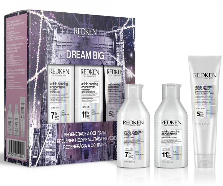 Urobte radosť sebe alebo svojim blízkym darčekovou sadou pre intenzívnu starostlivosť pre chemicky ošetrené a oslabené vlasy Redken Acidic Bonding Concentrate Dream Big!