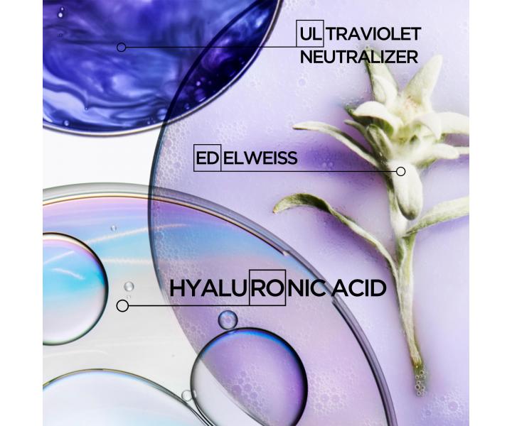 Kvet plesnivce alpského (edelweiss) - známy ako čistý nesmrteľný kvet - poskytuje antioxidačný účinok proti každodennému poškodeniu, zjemňuje a upokojuje citlivé vlasové vlákno