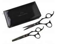 Sada kaderníckych nožníc 5,75" a efilačných nožníc 6,35" Olivia Garden Matt Black Edition obsahuje: