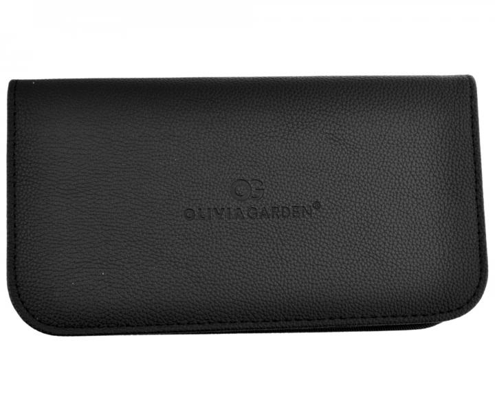 Kadernícke púzdro Olivia Garden na uloženie kaderníckych a efilačných nožníc, látkového obrúska a olejčeka. Puzdro v lesklej čiernej farbe má zapínanie na zips a na prednej strane vytlačené logo značky.