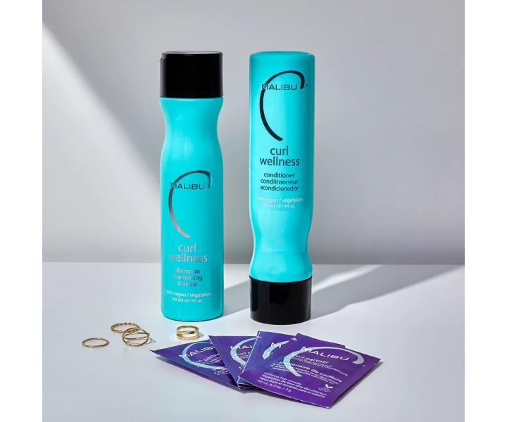 Prirodzene pružné a definované vlny a kudrliny sú s kondicionérom Malibu C Curl Wellness Conditioner jednoduchou záležitosťou. Špeciálna technológia uzatvára vlhkosť okolo každého vlasu tak, aby sa zabránila jeho vysychaniu. Vďaka tomu sú vlny a kučery krásne hydratované, elastické a oveľa menej krepaté. Výhodou je aj ľahké rozčesávanie a oslnivý lesk vlasov. 100% vegánske zloženie bez sulfátov, parabénov, chloridu sodného a umelej parfumácie bolo navrhnuté tak, aby bolo k vlasom veľmi šetrné a nezaťažovalo ich. Kondicionér nebol testovaný na zvieratách.