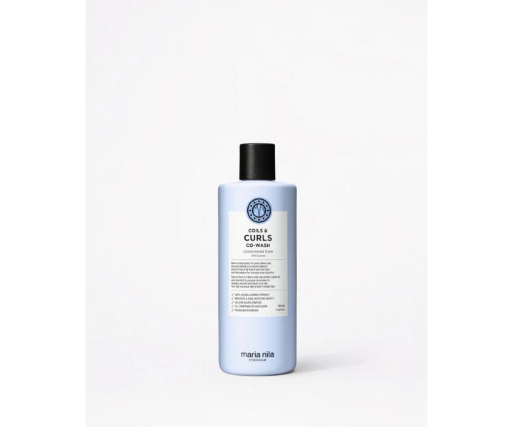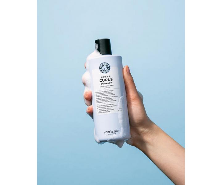Všestranná vlasová starostlivosť Maria Nila Coils & Curls Co-Wash kombinuje hydratačné a rozčesávacie vlastnosti šampónu a kondicionéra. Jedinečné vegánske zloženie netestované na zvieratách obsahuje komplex Curl Guard s bambuckým maslom, avokádovým olejom a šípkovým olejom, ktorý poskytuje vlasovému vláknu hydratáciu, lesk a zabraňuje jeho lámaniu. Komplex je doplnený upokojujúcou zmesou s jojobovým olejom, aloe vera, výťažkom z ibišteka a vitamínom E. Táto zmes vlasy a pokožku hlavy vyživuje, zjemňuje a vyrovnáva. Ďalej tiež zachováva farbu vlasov, znižuje jej stratu spôsobenú umývaním, stylingom, UV žiarením a voľnými radikálmi. Vlasová starostlivosť je tak určená pre všetky typy vĺn a kučier, ktoré súčasne čistia a zároveň zanecháva dokonale jemné. To všetko je doplnené sviežou ovocnou vôňou s tónmi marhule a maracujem.