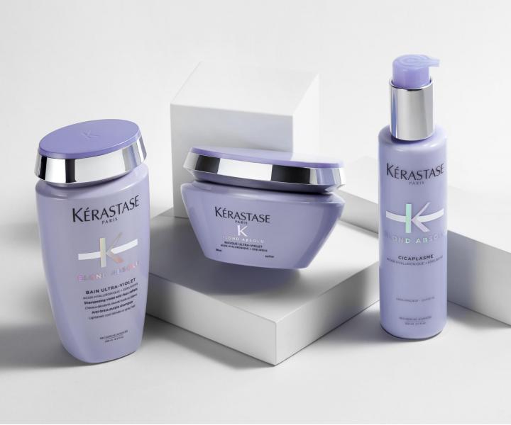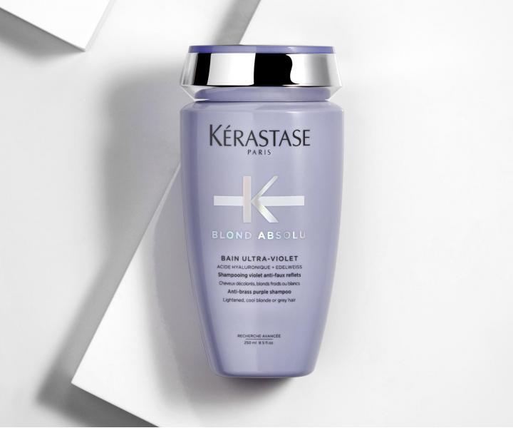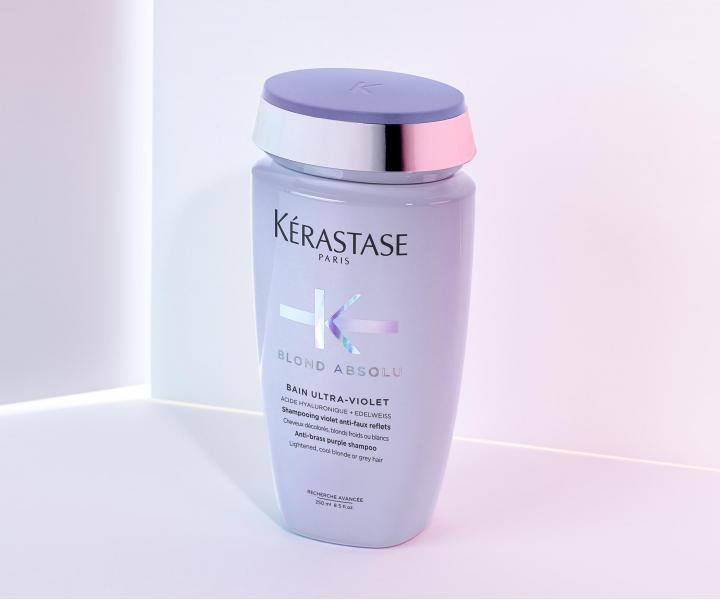 Šampónová kúpeľ Kérastase Blond Absolu Bain Ultra-Violet je špeciálne vyvinutá pre potreby zosvetlených, blond alebo šedivých vlasov. Vďaka bohatému obsahu fialového a modrého pigmentu neutralizuje žlté tóny, zachováva studené odlesky a dodáva mimoriadny lesk. Zloženie obohatené o kyselinu hyaluronovú a kvet plesnivce alpského zjemňuje vlasové vlákno, lieči trhliny vnútri vlasového vlákna a zaceľuje jeho povrch. Šampón je vhodný na každodenné použitie.