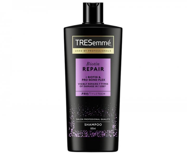 Šampón Tresemmé Biotin Repair je ideálnym pomocníkom pre starostlivosť o vlasy, ktoré sú oslabené farbením, žehlením, česaním, zaplietaním, fénovaním, kulmovaním či odfarbovaním, teda až siedmimi typmi poškodenia. Unikátna receptúra šampónu obsahuje Biotín a Pro-Bond komplex, ktorý preniká priamo do vlasových vlákien, kde opravuje poškodené väzby. Vlasy sú tak komplexne posilnené a chránené.