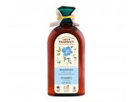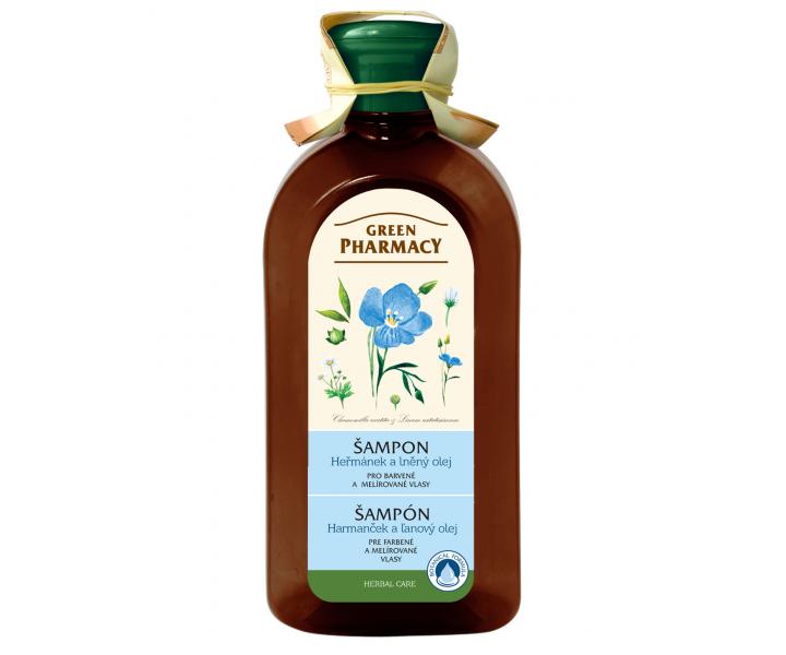 Šampón pre slabé a poškodené vlasy Green Pharmacy obsahuje extrakt harmančeka a ľanový olej. Šampón chráni farbené vlasy a obnovuje poškodené vlasy.