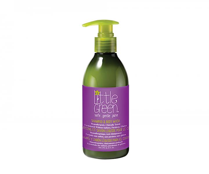 Šampón a sprchový gél pre deti Little Green Kids Shampoo & Body Wash jemne čistí, osviežuje a vyživuje vlasy aj celú pokožku tela. Je vhodný aj na použitie namiesto mydla na umývanie rúk. Šampón na krémovej báze obsahuje jemné nedráždivé a hydratačné látky, ktoré sú ideálne pre citlivú detskú pokožku. Vďaka obsahu panthenolu a vitamínu E šampón vlásky aj pokožku vyčistí, hydratuje a chráni. Zloženie neobsahuje ftaláty, sulfáty, parabény a lepok. Uzáver s pumpičkou umožňuje ľahké a presné dávkovanie jednou rukou. Šampón má jemnú ovocnú vôňu.