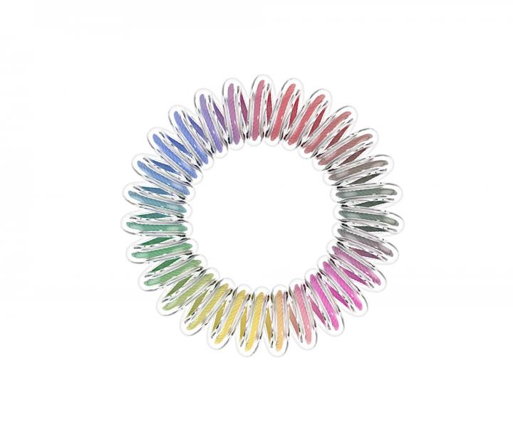 Gumička do vlasov Invisibobble Power Magic Rainbow vďaka svojmu špirálovému tvaru nezanecháva vo vlasoch stopy a vlasy pevne drží bez vzniku bolesti alebo nepríjemného ťahania. Je tak vhodná na každodenné a celodenné nosenie. Gumička je navyše skvelým doplnkom do vlasov a môžete ju využiť aj ako elegantný náramok na zápästie. Gumička je vyrobená z odolného plastového materiálu, ktorý gumičku drží v jej pôvodnom tvare a vďaka ktorému je gumička vodeodolná.