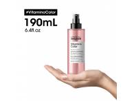 Sprej Loréal Serie Expert Vitamino Color na všetky typy farbených vlasov. Zloženie obohatené o neohespiridin, tocopherol, panthenol a UV filter pomáha chrániť vlasové vlákno pred vonkajšími vplyvmi a podporuje lesk farby.