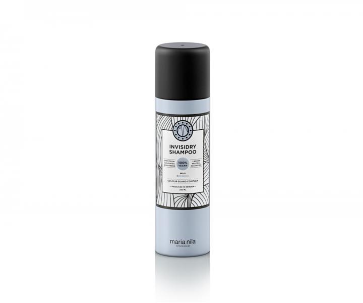 Suchý šampón Maria Nila Invisidry Shampoo rýchlo osvieži vlasovú pokožku aj samotné vlasy medzi jednotlivými umývaniami a dodá im čerstvý vzhľad. Súčasne vlasom poskytuje ľahký objem. Jemná vegánska receptúra sa ľahko vstrebáva a nezanecháva nežiaduce biele stopy. Je tak vhodný pre svetlé aj tmavé vlasy. Color Guard Complex chráni vlasy pred UV žiarením a voľnými radikálmi a garantuje dlhšiu životnosť farby vlasov. Suchý šampón má ovocnú vôňu mučenky a jablká.