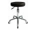 Kozmetický a kadernícky taburet na kolieskach Hairway Comfort s výškovo nastaviteľným sedom, chrómovou stabilnou konštrukciou a polstrovaním z umelej kože pre komfortné pohodlie pri práci. Taburet sedí na päťlúčovom chrómovom podstavci.
