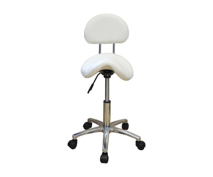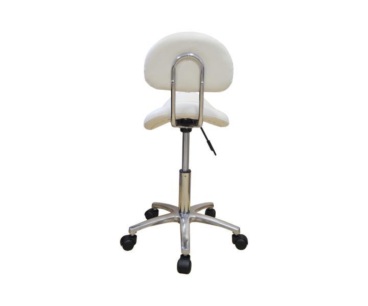 Kozmetický a kadernícky taburet na kolieskach s opierkou, výškovo nastaviteľným sedom, chrómovou stabilnou konštrukciou a polstrovaním z umelej kože pre komfortné pohodlie pri práci. Taburet sedí na päťlúčovom matnom chrómovom podstavci a je možné použiť ho aj v iných odboroch, napr pre vizážistky, fotografky aj ďalšie. Koženka má na spodnej strane opierky zips, vďaka ktorému je ľahko snímateľná. Na zadní straně opěrky krásné vtištěné logo Detail - Hair style.