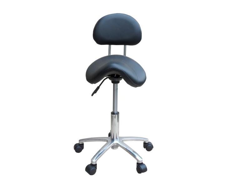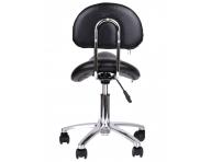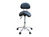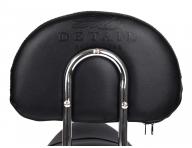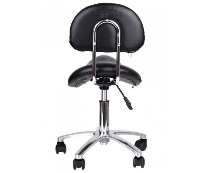 Kozmetický a kadernícky taburet Detail T2 na kolieskach s opierkou, výškovo nastaviteľným sedom, chrómovou stabilnou konštrukciou a polstrovaním z umelej kože pre komfortné pohodlie pri práci. Taburet sedí na päťlúčovom matnom chrómovom podstavci a je možné použiť ho aj v iných odboroch, napr pre vizážistky, fotografky aj ďalšie. Koženka má na spodnej strane opierky zips, vďaka ktorému je ľahko snímateľná. Na zadní straně opěrky krásné vtištěné logo Detail - Hair style.