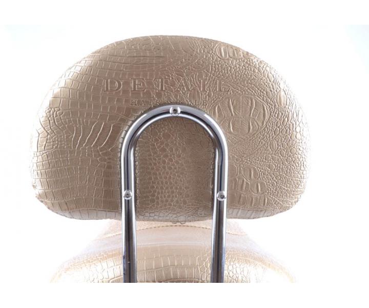 Kozmetický a kadernícky taburet na kolieskach s opierkou, výškovo nastaviteľným sedom, chrómovou stabilnou konštrukciou a polstrovaním z umelej kože pre komfortné pohodlie pri práci. Taburet sedí na päťlúčovom chrómovom podstavci a je možné ho použiť aj v iných odboroch, napr. pre vizážistky, fotografky i ďalšie. Na zadnej strane opierky je vtlačené logo Detail - Hair style.