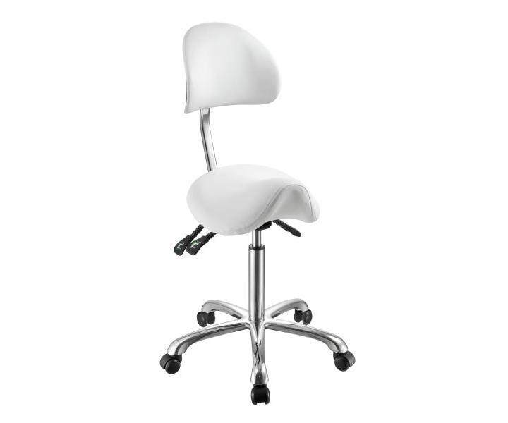 Kozmetický a kadernícky taburet na kolieskach s opierkou Weelko Noble so štýlovým ergonomickým dizajnom. Má výškovo nastaviteľný sed, chrómovú stabilnú konštrukciu a polstrovaní z umelej kože pre komfortné pohodlie pri práci. Tento elegantný taburet je možné použiť aj v iných odboroch, napr. pre vizážisty či fotografy.