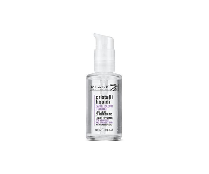 Tekuté kryštály pre matné vlasy bez lesku Black Professional Cristalli Liquidi s výťažkom z ľanových semienok obsahujú vysoký podiel oleja so zmäkčovacím účinkom. Tieto kryštály poskytujú účinnú ochranu proti škodlivým vplyvom a opakovaným chemickým úpravám vlasov, ako je farbenie, trvalá alebo odfarbovanie. Ľanové semienka, bohaté na vitamín F a kyselinu linoleovú, zaceľujú a chránia povrch vlasov, zjemňujú ich a vyhladzujú kutikulu, čím zaisťujú vlasom žiarivý vzhľad. Prchavé silikóny vytvárajú neviditeľnú ochrannú vrstvu na povrchu vlasov, ktorá zvyšuje ich lesk a chráni ich pred vonkajšími vplyvmi.