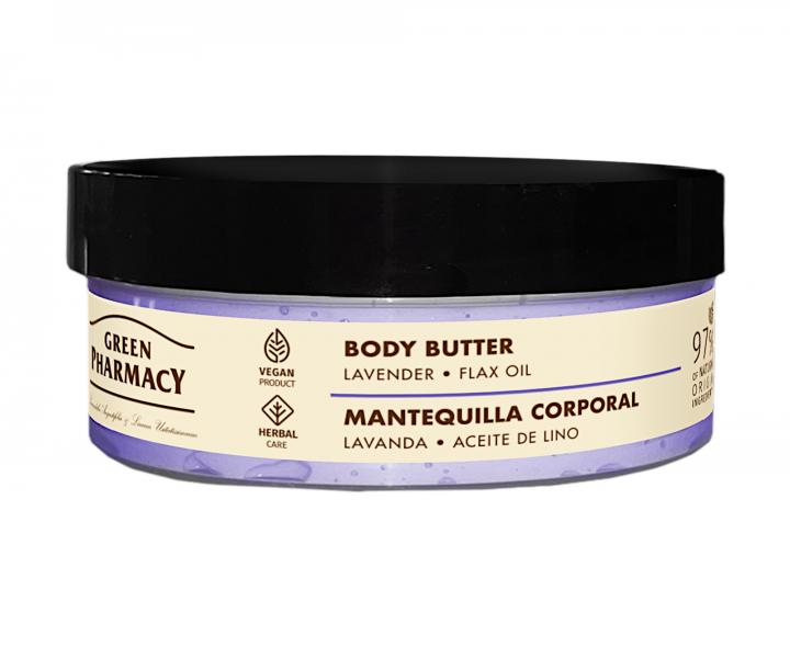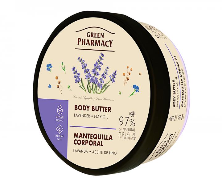 Telové maslo Green Pharmacy Body Butter je kvalitný produkt navrhnutý na poskytnutie hlbokej hydratácie a starostlivosti o pokožku. Maslo má hustejšiu, bohatú a mastnejšiu konzistenciu a spája blahodárne účinky levandule s výživnými vlastnosťami ľanového semienka, aby vaša pokožka zostala zdravá, hebká a svieža. Bolo vyvinuté s dôrazom na prírodné ingrediencie, ktoré tvoria 97 % obsahu produktu, a ich výživné vlastnosti. Zloženie masla je vegánske.