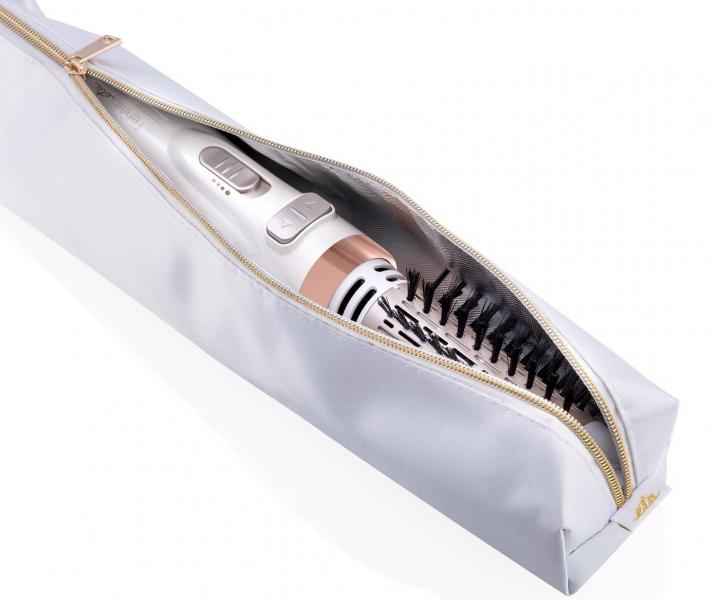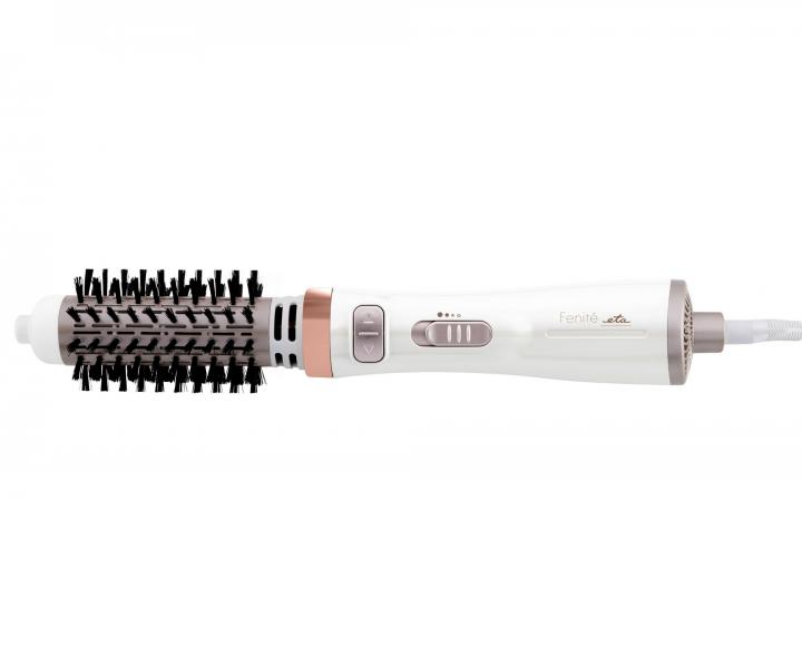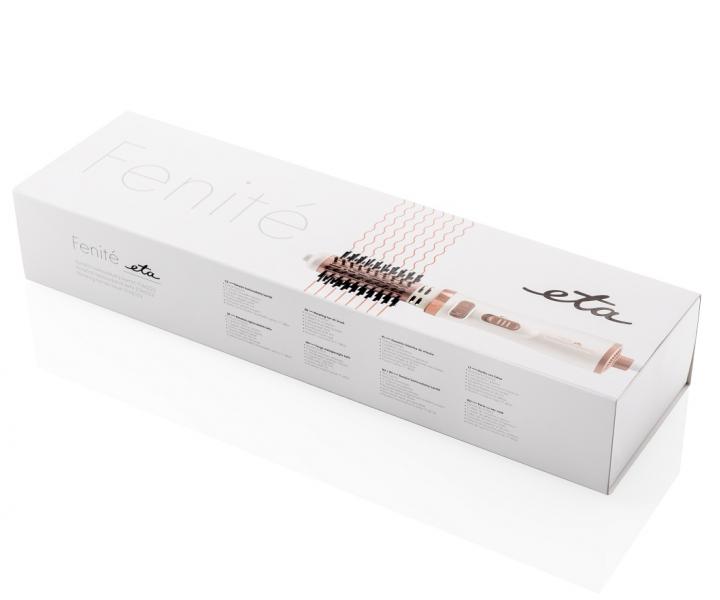 Teplovzdušná rotačná kefa na vlasy ETA Fenité 6322 s ionizačnou technológiou pre hladké a lesklé vlasy. Kefa má dve rýchlosti prúdenia vzduchu a tri stupne nastavenia teploty. Priemer rotačnej kefy je 38 mm. Kefa má rotačnou funkciu do oboch smerov, chladnú špičku, pútko na zavesenie a otočný kábel. Kefa má keramický povrch. Súčasťou balenia je cestovné púzdro.