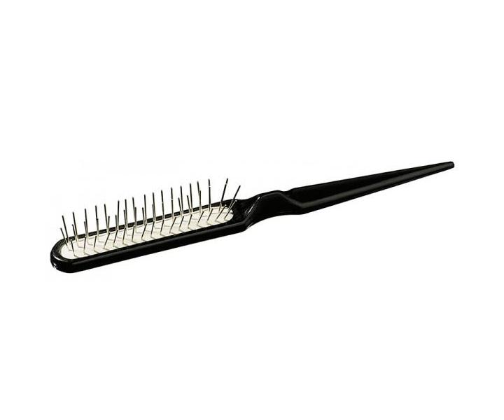 Tupírovací plochá kefa Keller má držadlo so špičkou a kovové hroty v 3 radoch v gumovom vankúšiku. Zaručuje ľahké tupírovania a bohatý objem. Ideálne pri česaní akéhokoľvek účesu.