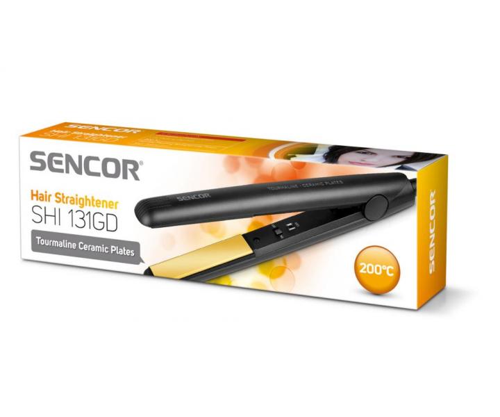 Žehlička na vlasy Sencor SHI 131GD s turmalínovou technológiou kombinovanú s keramikou pre maximálnu kĺzavosť vlasov po žehliacej ploche. PTC technológia pre rýchle zahriatie doštičiek na pracovnú teplotu 200 °C. Specální plávajúce plochy pre zabraňujú poškodeniu vlasov přikřípnutí Prívodný kábel otočný o 360° zamedzuje krúteniu a zamotávaniu kábla. LED indiktátor prevádzky.
