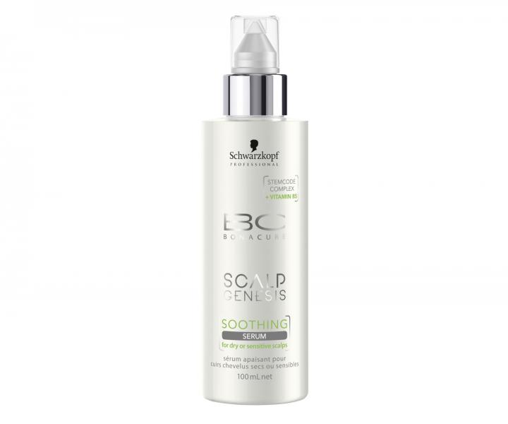 Sérum Schwarzkopf Professional BC Bonacure Scalp Genesis Soothing Serum je určené na starostlivosť o suchú alebo citlivú pokožku hlavy, ktorou trápi pocit svrbenia a napätia. Unikátna technológia StemCodeTM komplex Stem Protect vytvára ochranný štít okolo vlasových cibuliek a zabezpečuje tak, že vlasy a vlasová pokožka budú ozdravené av skvelom stave. Zloženie obsahujúce cenné zložky, ako je napríklad vitamín B5, glycerín, alantoín a hydrolyzovaný keratín, upokojuje, tíši a obnovuje rovnováhu pokožky hlavy. Ďalej tiež pomáha vyrovnávať úroveň vlhkosti vo vlasoch a pokožke hlavy. Sérum tiež zaisťuje základ pre budúci optimálny stav vlasov.