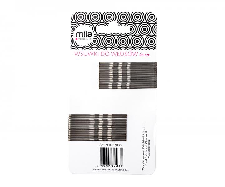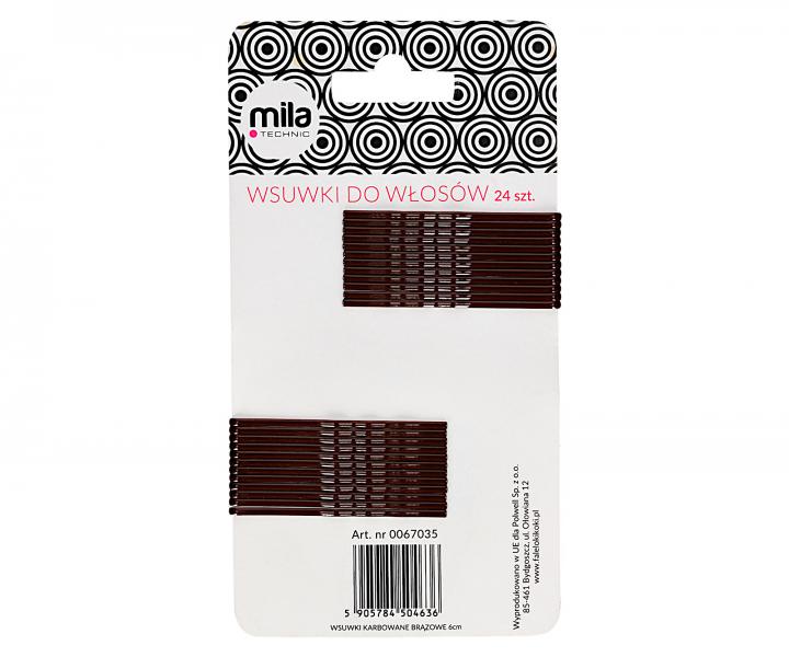 Praktická vlnitá sponka Mila s veľkosťou 6 cm je hnedá lakovaná. Sponka je kvalitný a vďaka svojej pevnosti dobre držia vo vlasoch. Farba: hnedá Dĺžka: 6 cm Počet kusov v balenie: 24 ks Upozornenie: Výber odtieňa hnedej je náhodný!