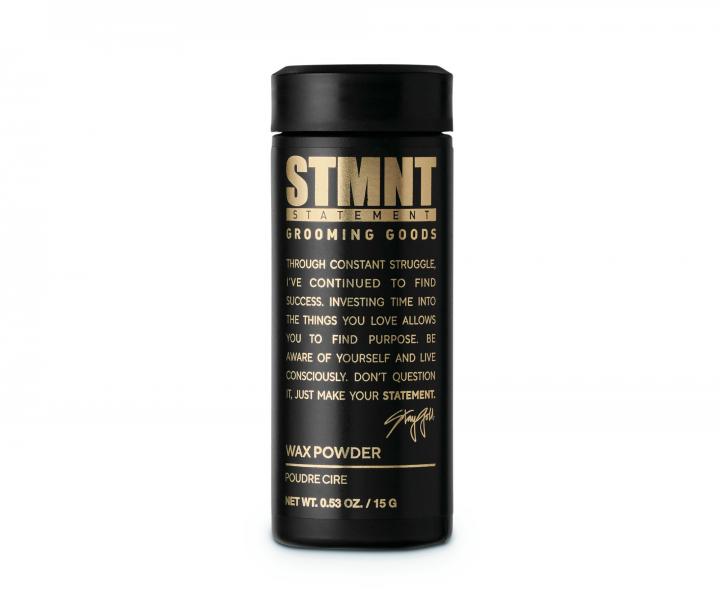 Voskový púder STMNT Wax Powder má ľahkú púdrovú konzistenciu, ktorá sa po vpracovaní do vlasov alebo po premnutí v dlaniach mení do formy nelepivého vosku. Vďaka tejto púdrovej konzistencii je umožnené rovnomerné nanesenie vosku až ku korienkom. Púder dodá vlasom poddajnosť, objem a zaistí im stredne silnú fixáciu. Voskový púder vlasy nezlepuje a dodáva im polomatný vzhľad. Možno ho ľahko z vlasov vymyť a dodáva im drevitú vôňu s tónmi citrusov. Púder má vegánske zloženie.