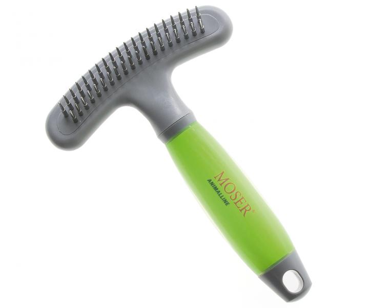 Vyčesávacie hrablo s otočnými kovovými hrotmi efektívne rozčeše a odstráni starú Posadu a knôty zo srsti. Špeciálne otočné hroty pomáhajú česať bez šklbanie a ťahanie srsti. Príjemné gélové držadlo sa presne vytvaruje podľa vašej dlane. Vďaka tomu je kefa dobre uchopiteľný a nešmýka z ruky. Súčasťou rukoväte je očko pre zavesenie a odloženie kefy.