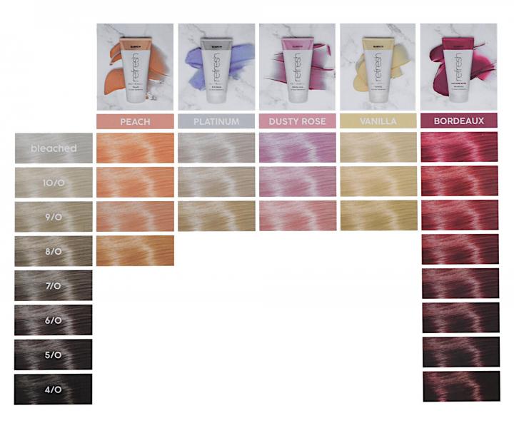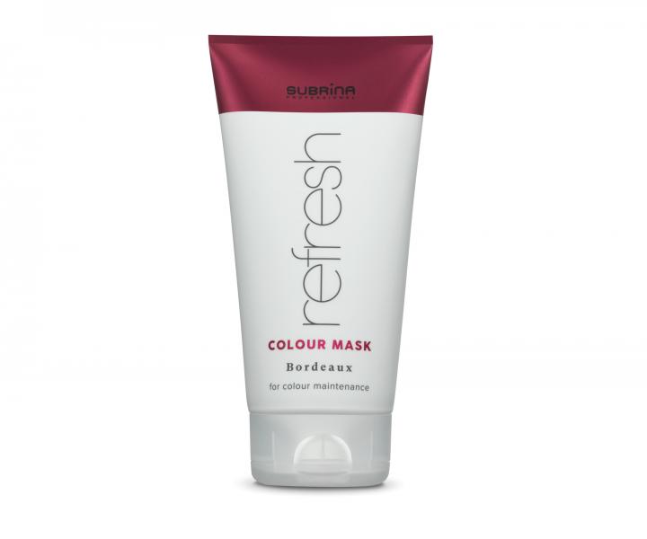 Vyživujúca maska ​​Subrina Professional Refresh Colour Mask Bordeaux obsahuje dočasné pigmenty, môžete s ňou experimentovať a vytvoriť štýlový účes. Maska vlasy oživuje, dodáva im hĺbkovú výživu a hydratáciu vďaka obsahu kokosového oleja a mangového masla. Eliminuje krepatenie vlasov, dodáva hodvábnu hebkosť a oslnivý lesk. Farebné výsledky vydržia 3-5 umytí podľa pôvodnej farby a stavu vlasov. Najlepšie maska ​​funguje na odfarbených vlasoch. Maska s dočasnými pigmentmi obnovuje aj existujúcu farbu. Je k dispozícii v 5 odtieňoch (platinový, vanilkový, broskyňový, svetlo ružový, bordový). Maska nekryje šedé vlasy, ale dodá im ľahký farebný nádych. Z vlasov ju ľahko vymyjete šampónom. Bordó je žiarivý, tmavočervený odtieň, ktorý je skvelý pre brunetky. Na blond a zosvetlených vlasoch má veľmi intenzívne výsledky. Výdrž bordového odtieňa je oveľa dlhšia ako u ostatných odtieňov.