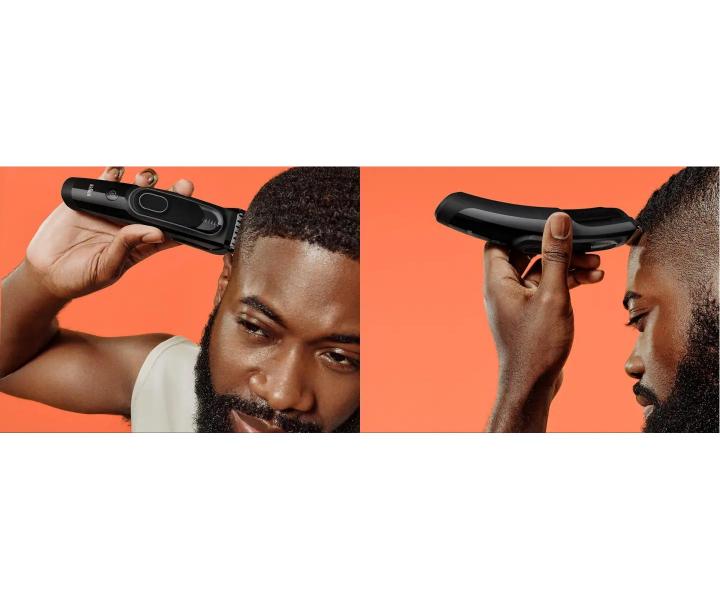 Zastrihávač vlasov Braun Series 5 HC5310 v elegantnom čiernom designu je skvelým pomocníkom pre jednoduché a rýchle zastrihnutie vlasov v pohodlí domova. Zastrihávač disponuje strihacou hlavicou s extra ostrými čepieľkami, ktoré si hravo poradia aj s dlhšími a hustejšími vlasmi. Výška strihu samotného zastrihávača je 1 mm. Súčasťou balenia je posuvný nadstavec, ktorý umožňuje ľahko nastaviť výšku strihu od 3 mm do 24 mm pomocou posuvného tlačidla na tele strojčeka. Toto tlačidlo s funkciou zámku Memory SafetyLock si pamätá posledné používané nastavenie výšky strihu. Vďaka ergonomickej rukoväti s gumovým povrchom sa so zastrihávačom pohodlne manipuluje. Strojček je tiež vhodný na vytváranie kontúr a presných línií jeho otočenia o 180 °. Doba prevádzky strojčeka je až 50 minút na jedno nabitie. Pre ľahkú údržbu je strojček a nadstavec možné opláchnuť pod tečúcou vodou.