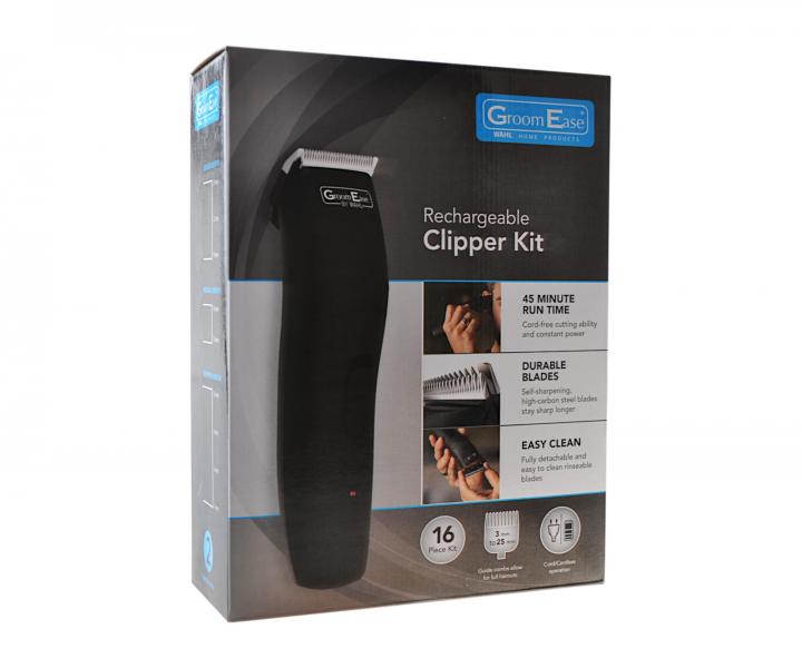 Zastrihávač vlasov v čiernej farbe Wahl GroomEase disponuje hlavicou z uhlíkovej ocele o šírke 45 mm so samoostriacimi brity. Na ľahšie čistenie je hlavicu možné odrobiť a opláchnuť. Výška strihu samotného strojčeka je 1 mm. Výšku strihu môžete meniť vďaka plastovým nadstavcom o veľkosti 3 - 25 mm. Na jedno plné 720 minútové nabitie je doba prevádzky strojčeka 45 minút. Súčasťou balenia je okrem nadstavcov aj praktické puzdro na zips, nožnice a hrebienok.