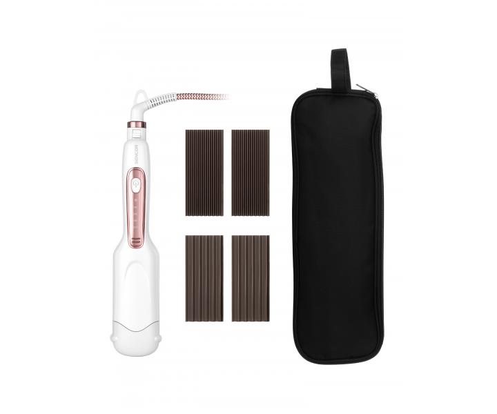 Žehlička a krepovačka na vlasy 2v1 Sencor v perleťovo bielej farbe v kombinácii s ružovou sa stane štýlovým pomocníkom pre úpravu vašich vlasov. Balenie obsahuje 3 vymeniteľné plochy pre žehlenie a krepovanie a vy si tak užijete účes podľa nálady. Nastaviteľná teplota chráni vaše vlasy a indikátor teploty uľahčuje nastavenie. Povrch žehliacich a kr... viac »