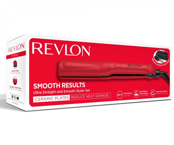 Žehlička na vlasy Revlon Ultra Straight & Smooth Styler RVST2176GPE je skvelým pomocníkom na narovnanie a skrotenie najmä nepoddajných vlasov a to vďaka optimálnej teplote 200 °C. Na túto teplotu sa žehlička nahreje iba za 60 sekúnd, zaisťuje tak rýchly a efektívny styling vlasov. O šetrnosť sa postarajú keramické žehliace doštičky, ktoré rovnomerne distribuujú teplo a zaisťujú ľahké kĺzanie doštičiek po jednotlivých prameňoch. Pomáhajú tak redukovať poškodenie vlasov vysokými teplotami, podporujú ich hydratáciu a lesk. Žehlička je ideálna pre rovný styling aj vytváranie vĺn. Manipuláciu so žehličkou uľahčuje 1,8 metrov dlhý otočný kábel. Súčasťou balenia je praktické cestovné puzdro a kefa na rozčesávanie vlasov.