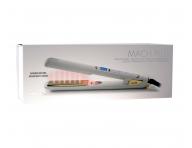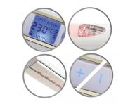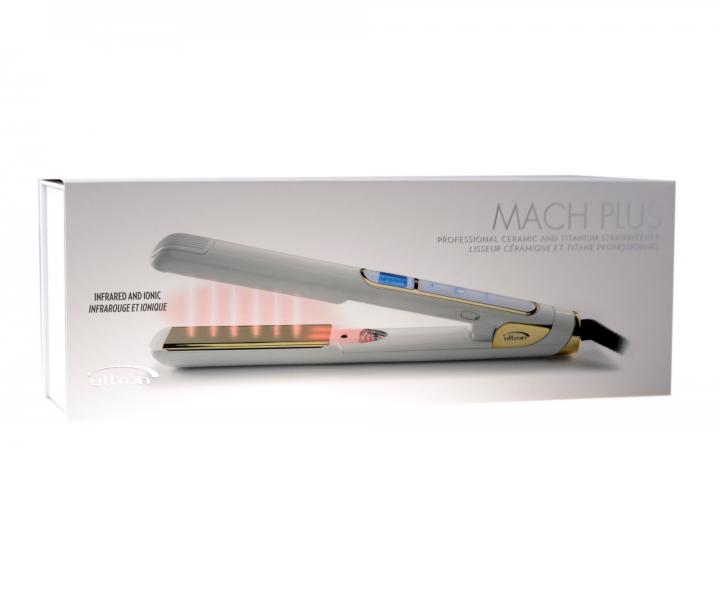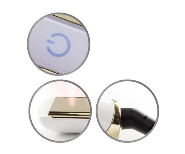 Profesionálna žehlička na vlasy Ultron Iku s generátorom iónov a funkciou infrared. Generátor iónov produkuje milióny očisťujúcich negatívnych iónov a vďaka tomu vlasy zostávajú hydratované a dokonale lesklé. Infračervené žiarenie preniká do hĺbky vlasov a regeneruje zničené tkanivo. Žehlička sa ľahko ovláda a skvele padne do ruky. Na digitálnom dotykovom displeji si môžete nastaviť teplotu od 120 °C do 230 °C po 10 °C. Displej je možné tiež pomocou bočného tlačidla zamčiť. Plávajúce keramické titánové plochy umožňujú lepší kontakt s vlasmi a výsledkom sú dlhotrvajúce výsledky, žiarivé, hebké a zdravé vlasy.